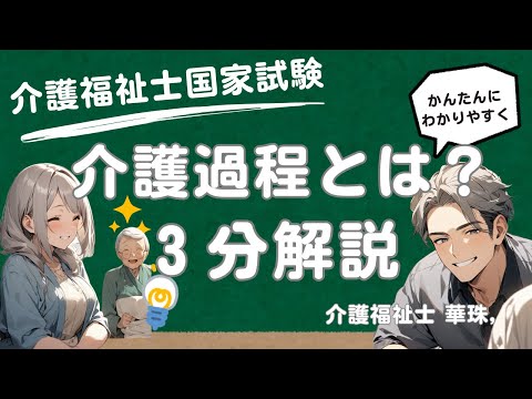 この動画では、介護過程の4つのステップ(アセスメント、計画、実施、評価)を分かりやすく解説します。