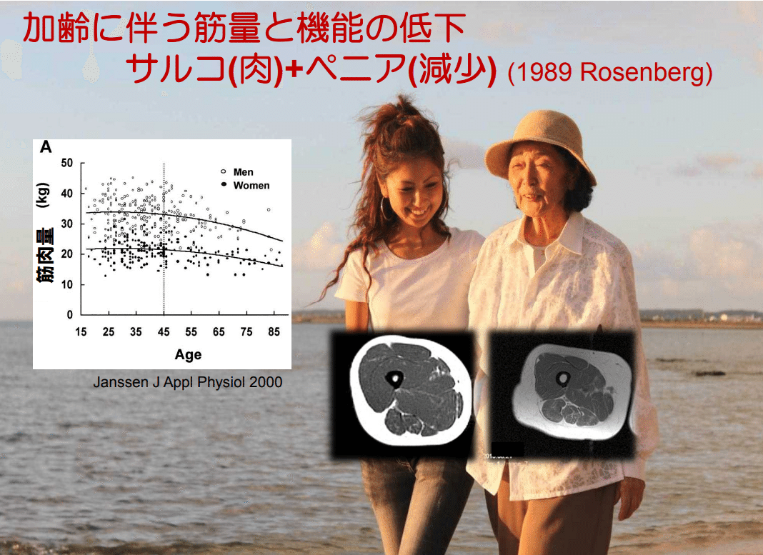 サルコペニアとは、加齢によって予備力が低下し、ストレスへの回復力が低下した状態で、要介護状態の前段階といえる。